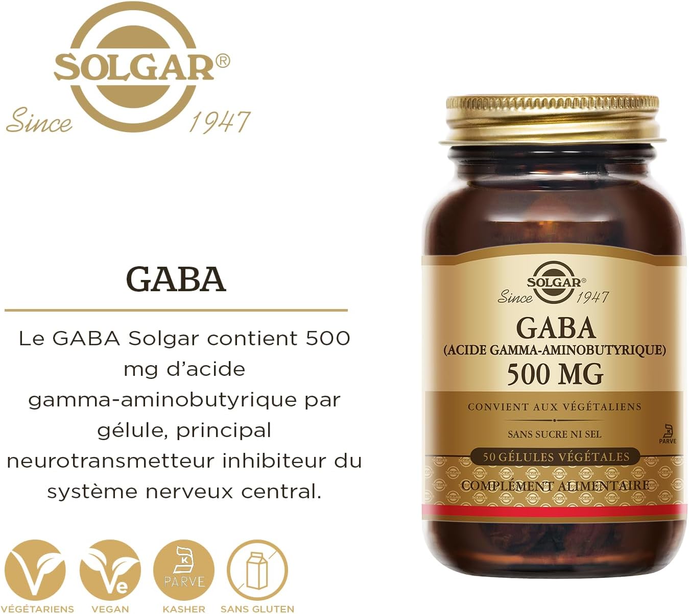 Dosage par gélule : 500 mg de GABA