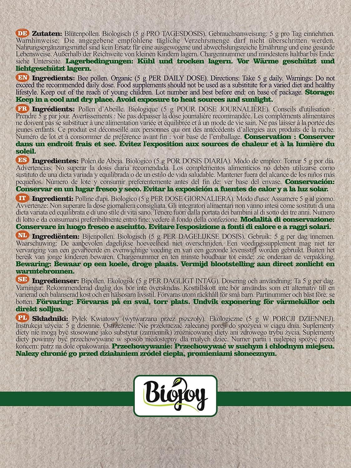 Ingrédient : pollen d’abeille biologique (ingrédient unique)