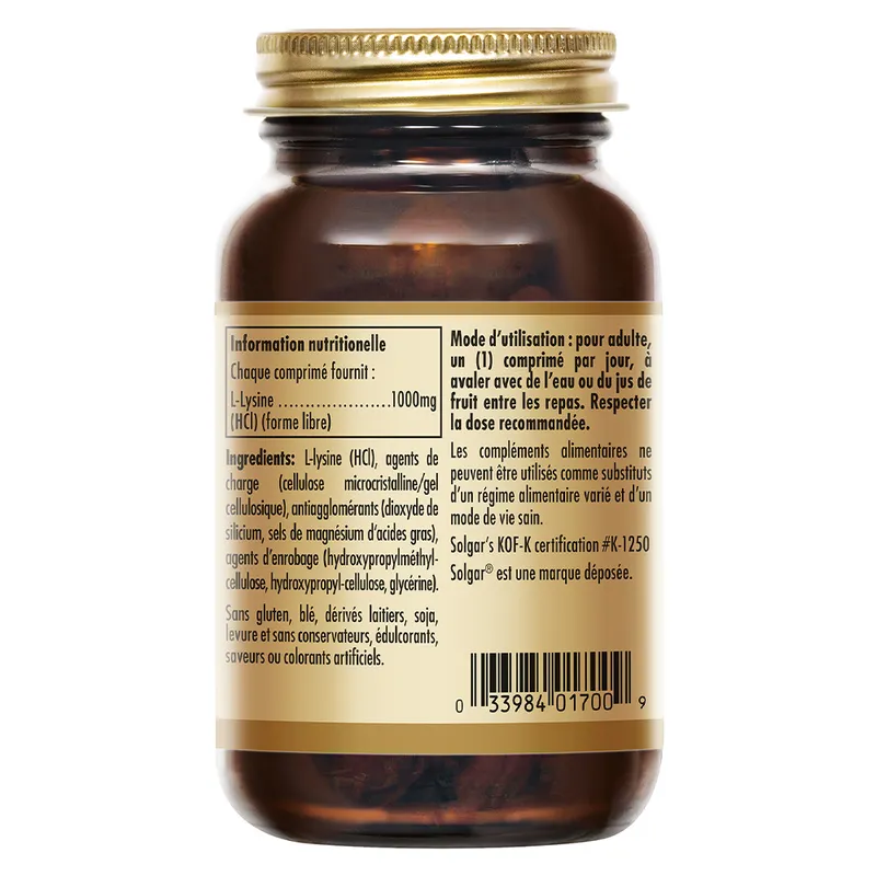L-Lysine (forme libre) : 1000 mg